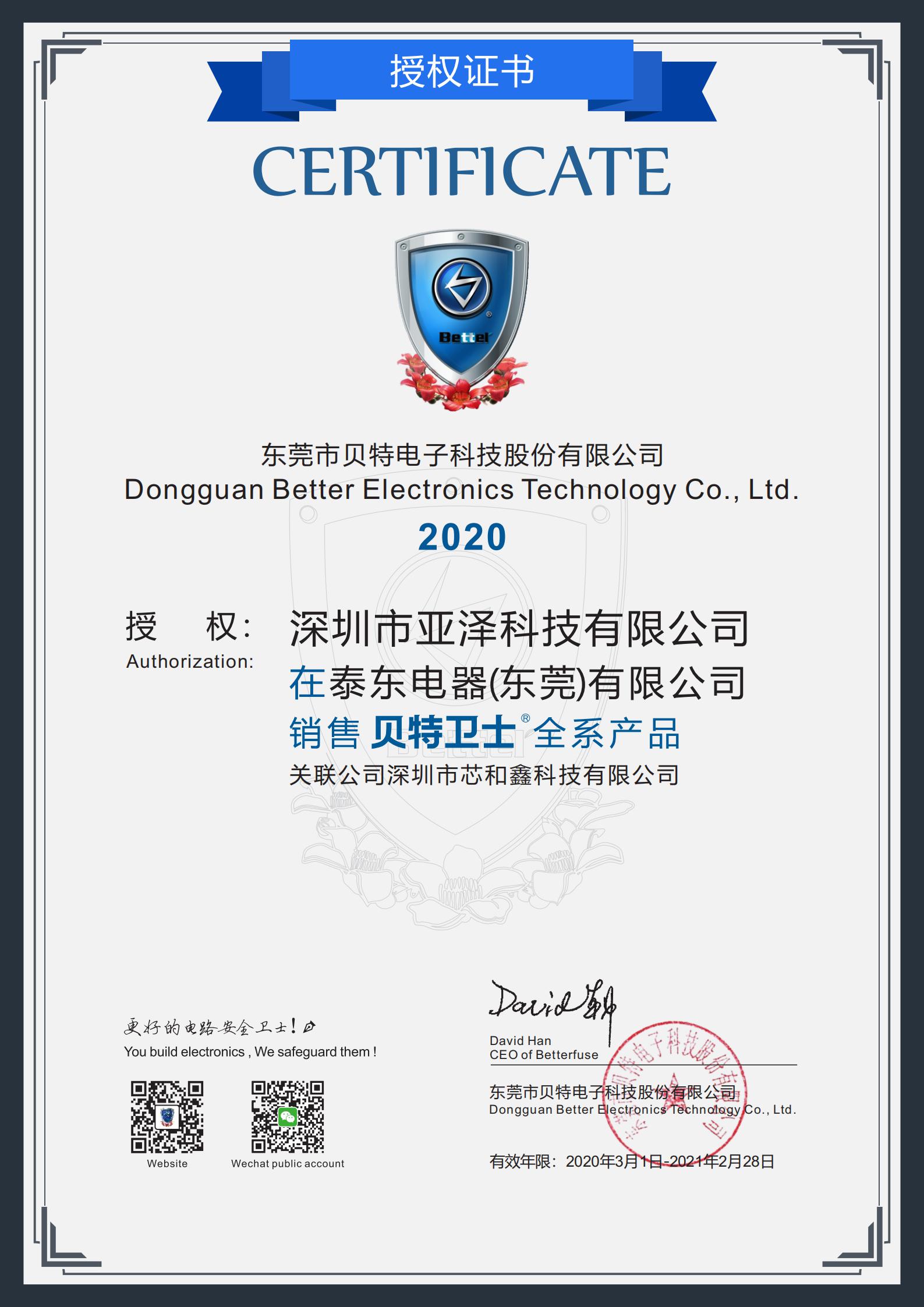 亞澤科技于2020年3月成功簽約東莞市貝特電子,成為“貝特衛(wèi)士”全線產(chǎn)品銷售代理商。